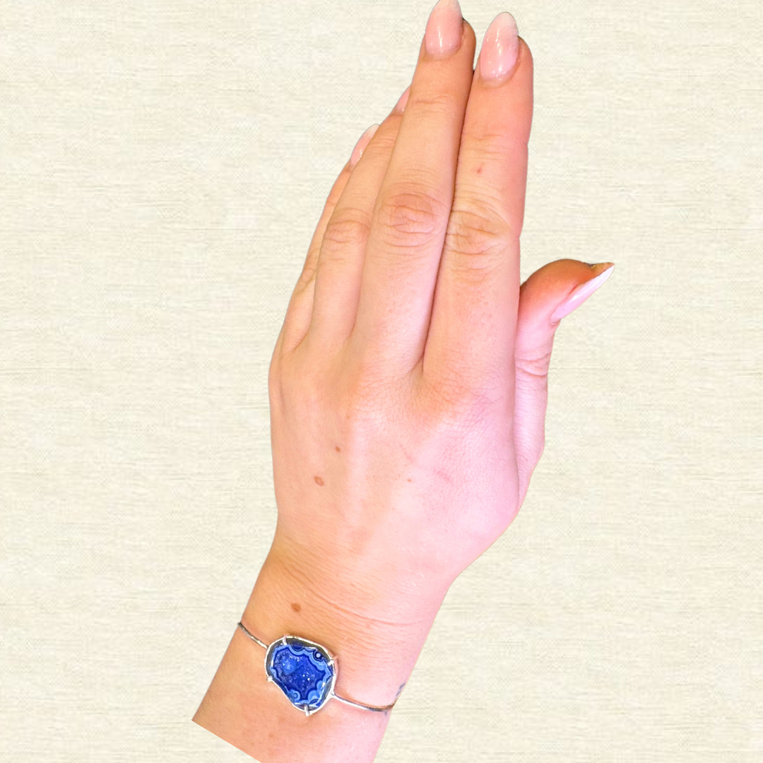 A geode bracelet with a 925 silver base and four layers of 18k goldplating is a luxurious and elegant accessory. The combination of the sturdy silver core and the rich gold layers enhances durability while exuding sophistication. Paired with natural geode slices or crystals, this bracelet becomes a unique blend of earthy charm and refined craftsmanship. The shimmering crystals and gold accents make it a perfect statement piece, ideal for elevating any outfit with a touch of timeless elegance.