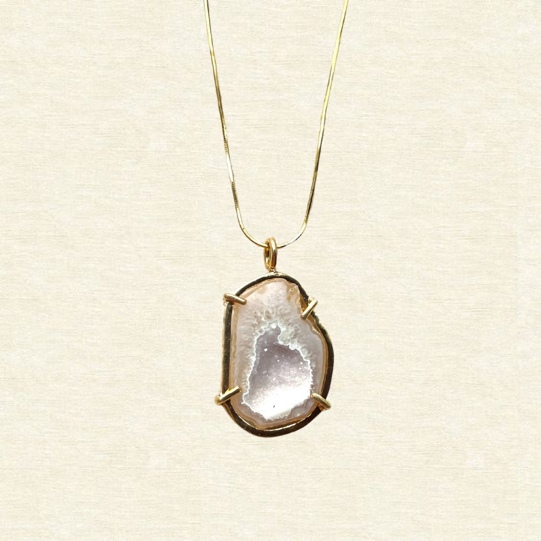 Natural Geode stone + thin beautiful 45 mm goldplated 18k necklace with silver base