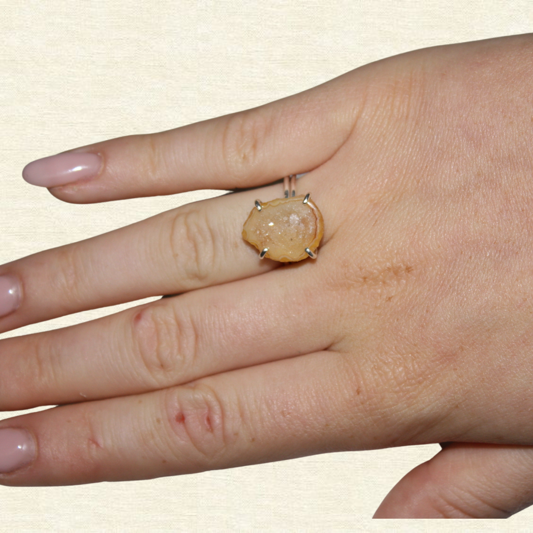 A geode agate crystal is a unique and beautiful natural formation. It consists of a hollow, rounded rock lined with layers of agate, a type of quartz, which often displays stunning banding patterns. Inside, the geode may contain sparkling crystals, creating a mesmerizing display. These formations enhance inner stability, composure, and protect your peace.