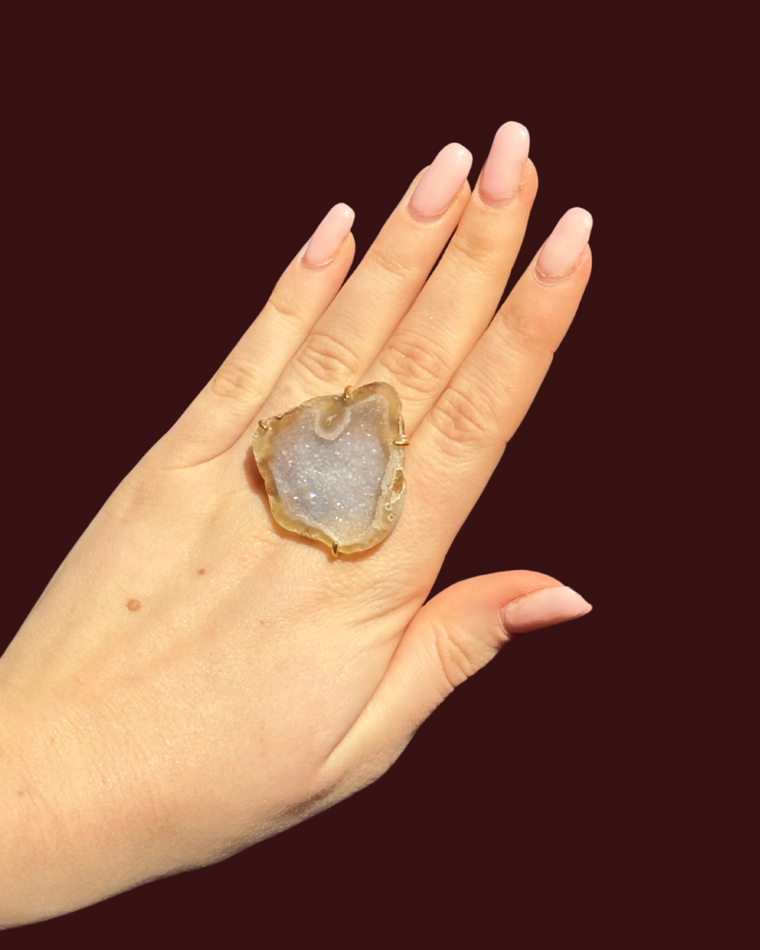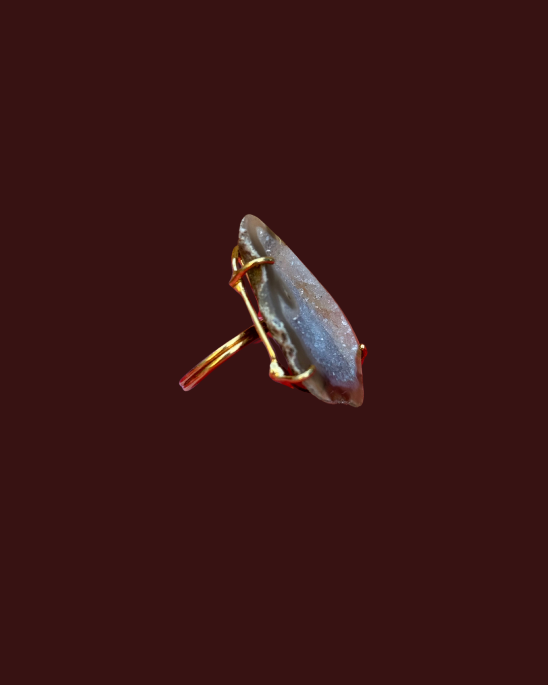 This XL ring is a unique, one-of-a-kind piece, meaning no two are the same. It is crafted from gold vermeil with 2.5 microns of gold and is fully adjustable for a perfect fit. This special ring is designed to bring Protection & provides a shield for toxicity making it both a stylish and meaningful accessory.