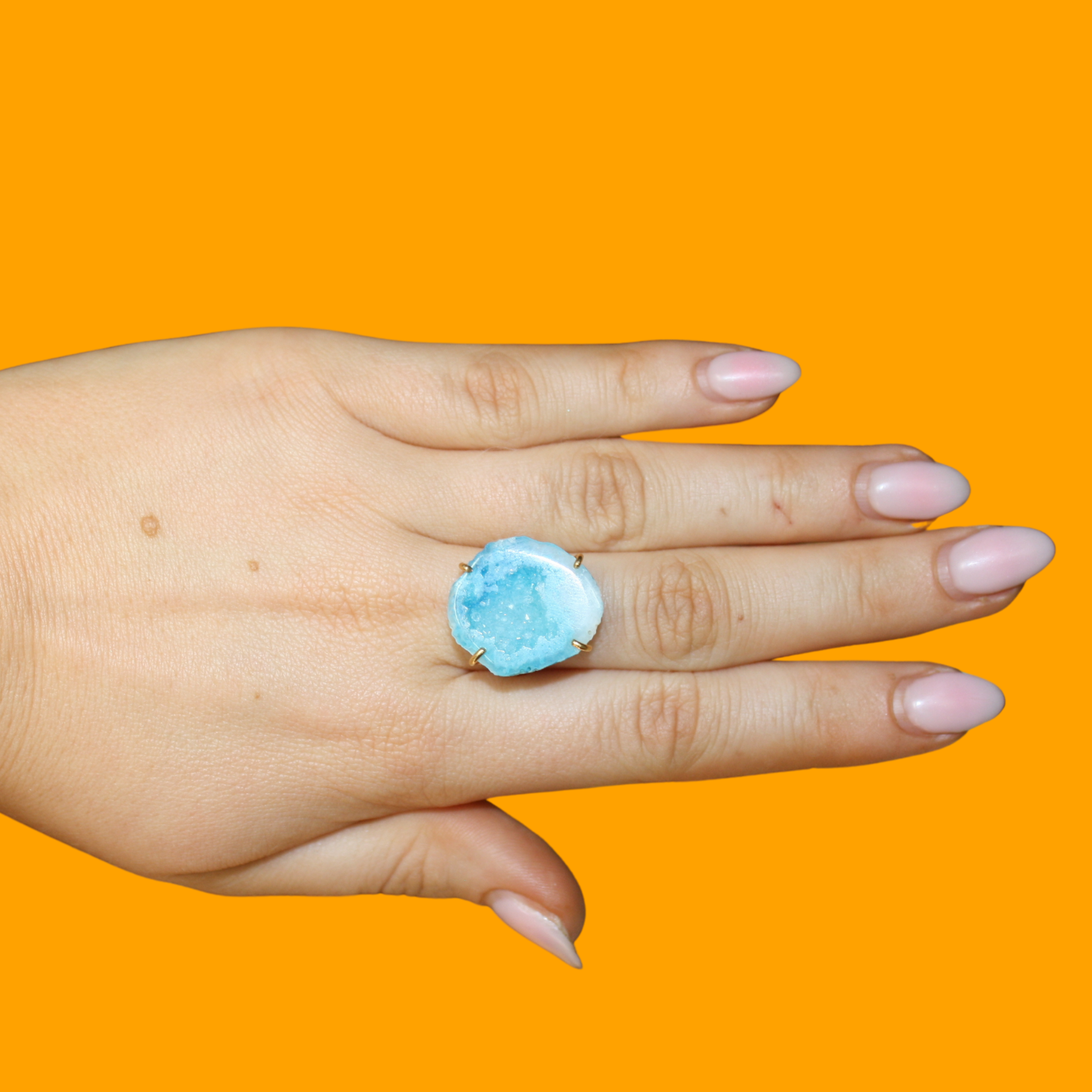 This ring is a unique, one-of-a-kind piece, meaning no two are the same. It is crafted from gold vermeil with 2.5 microns of gold and is fully adjustable for a perfect fit. This special ring is designed to bring less stress, better sleep and more confidence making it both a stylish and meaningful accessory.