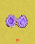 A pair of stud earrings featuring purple geode stones, each with a natural sparkling effect that highlights their unique character. Set in 925 sterling silver and electroplated with 2 micron gold, they symbolize inner peace in this busy world.