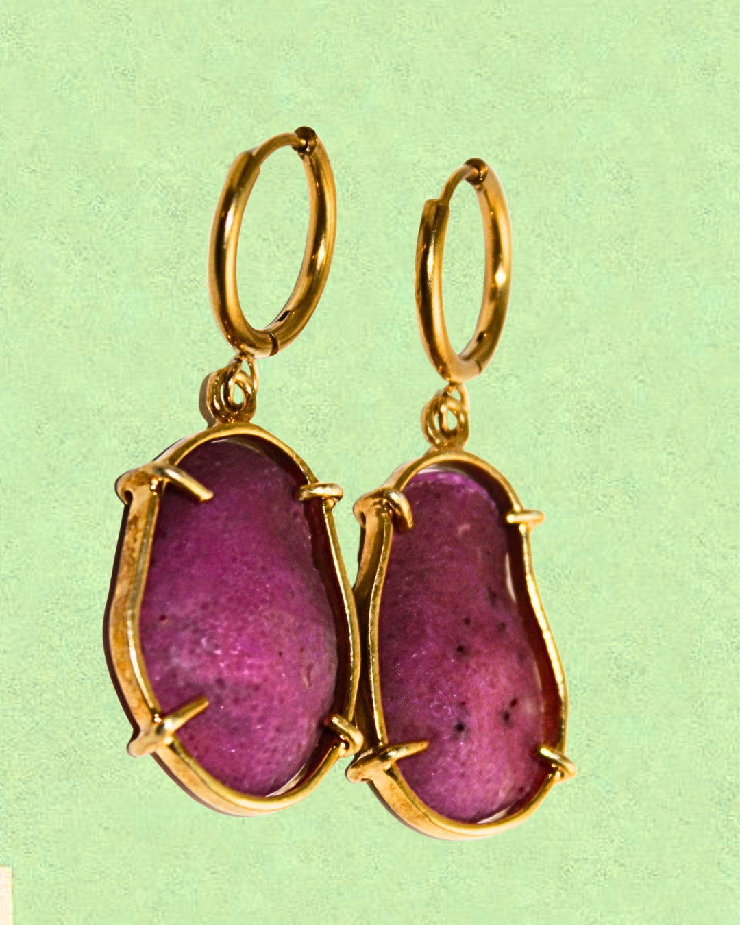 These earrings combine durability and elegance: crafted in stainless steel with a sterling silver 925 base, finished with 2.5 micron electroplated gold for long-lasting shine. Each piece is set with a unique pink stone, making it truly one of a kind. The soft pink color symbolizes love, compassion, and harmony — a gentle reminder of inner peace and emotional balance every time you wear them.