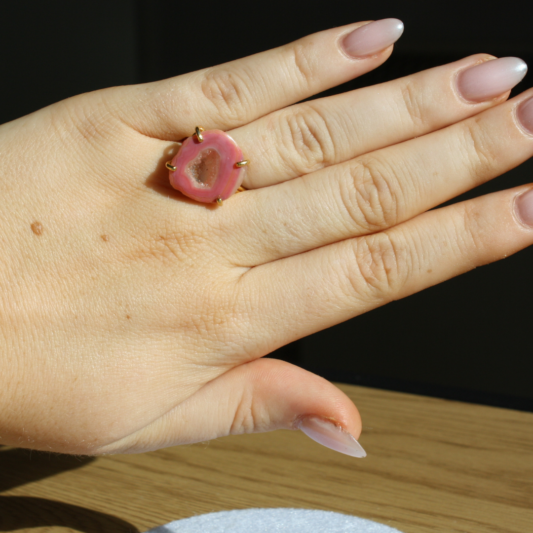 A geode agate crystal is a unique and beautiful natural formation. It consists of a hollow, rounded rock lined with layers of agate, a type of quartz, which often displays stunning banding patterns. Inside, the geode may contain sparkling crystals, creating a mesmerizing display. These formations enhance inner stability, composure, and protect your peace.