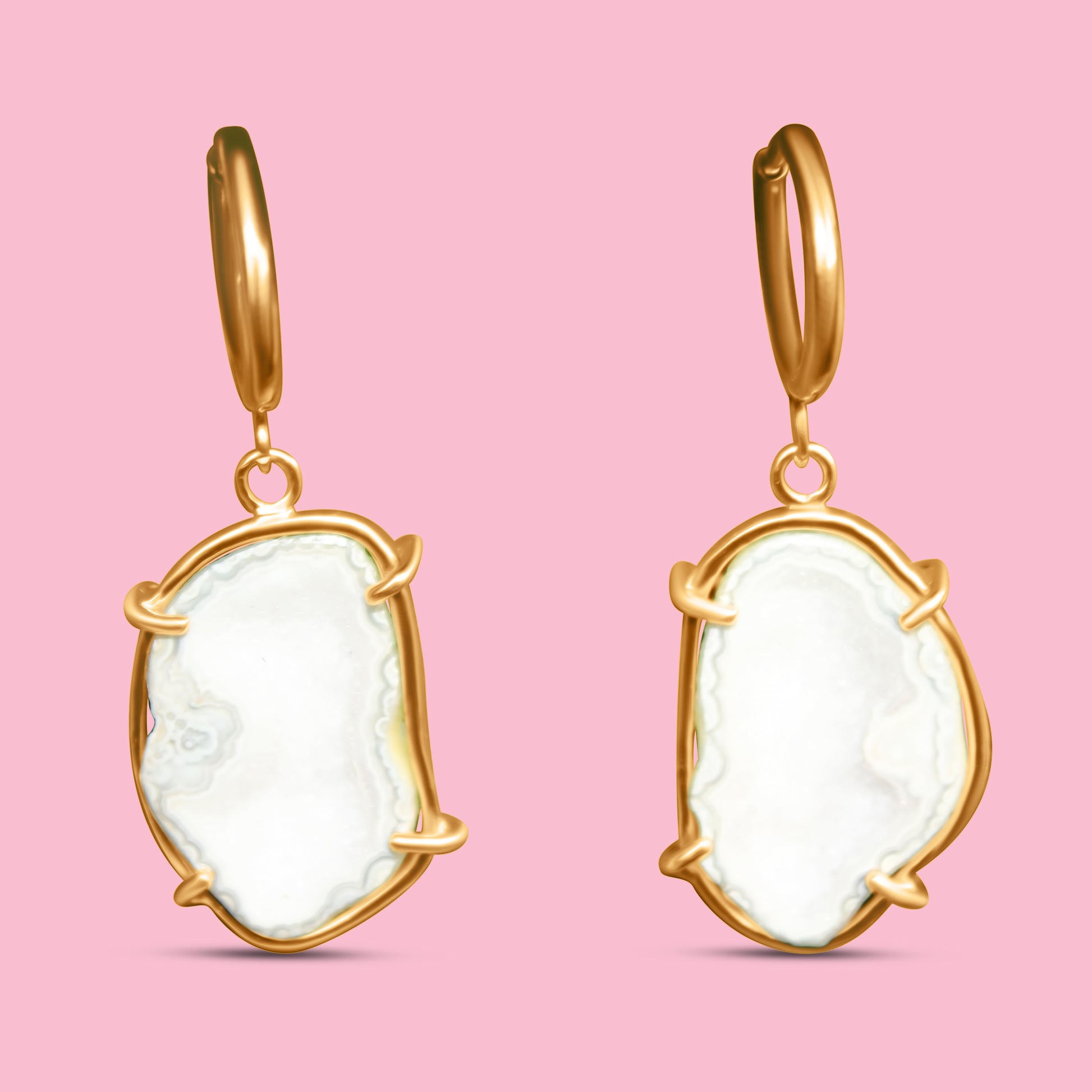 One of a kind: These earrings feature natural white geode stones – each pair is completely unique in shape, texture, and sparkle.