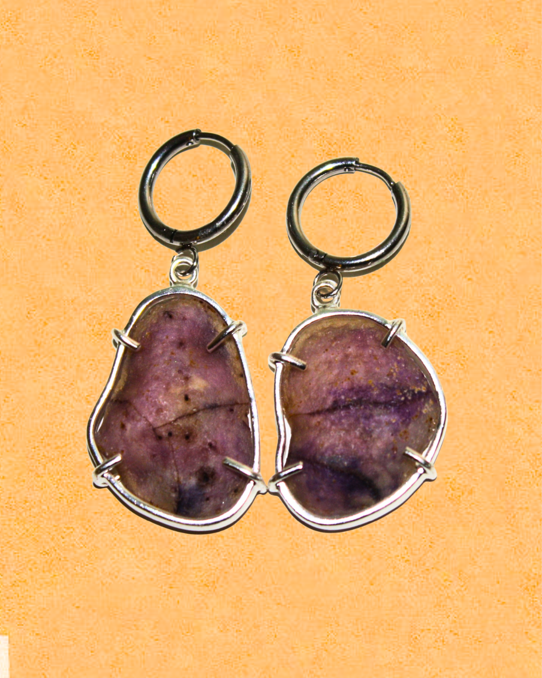 These earrings combine durability and elegance: crafted in stainless steel with a sterling silver 925 base, finished with 2.5 micron electroplated gold for long-lasting shine. Each piece is set with a unique purple stone, making it truly one of a kind. The rich purple color symbolizes intuition, spirituality, and creativity — a reminder of inner wisdom and imagination every time you wear them.