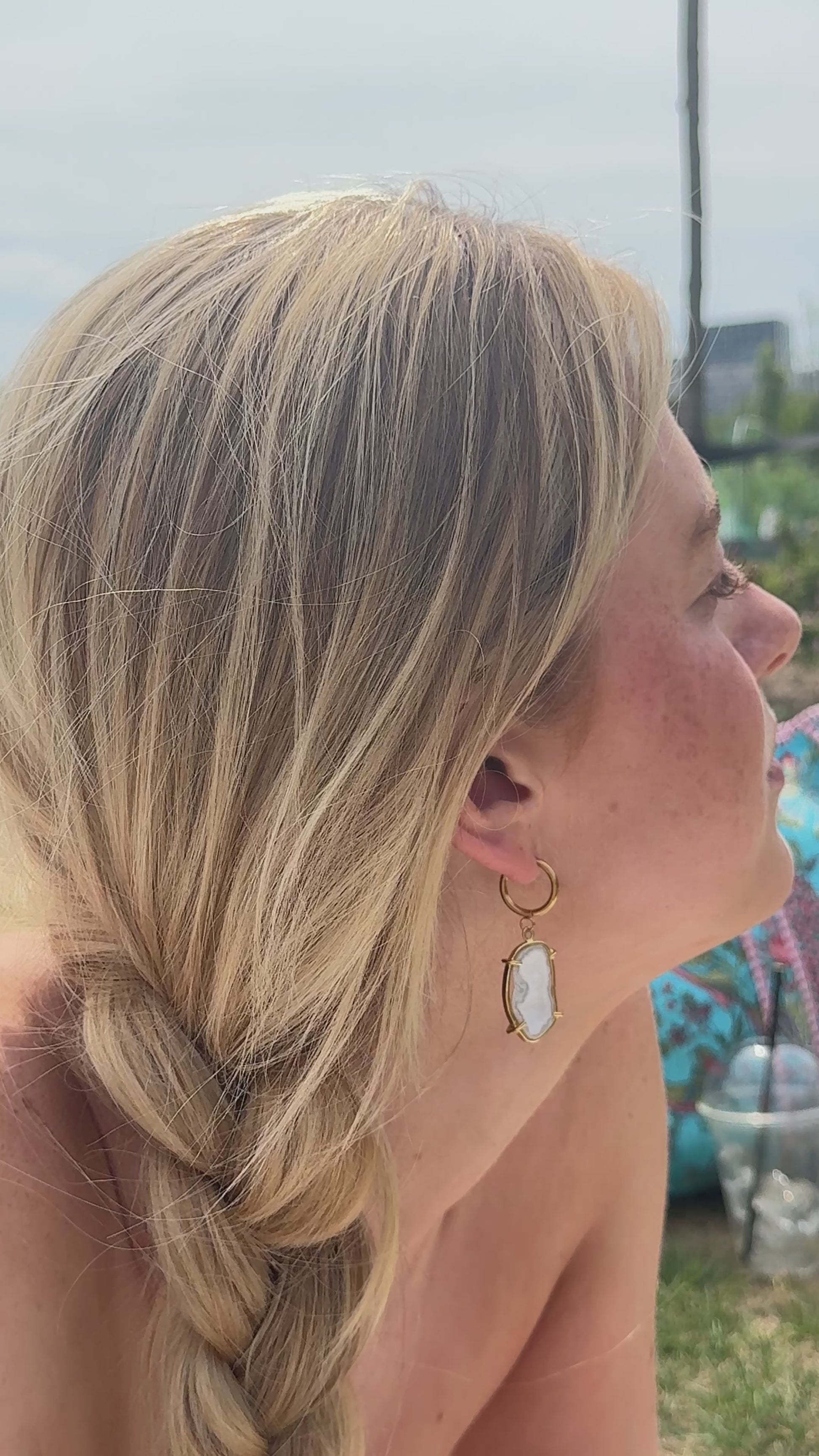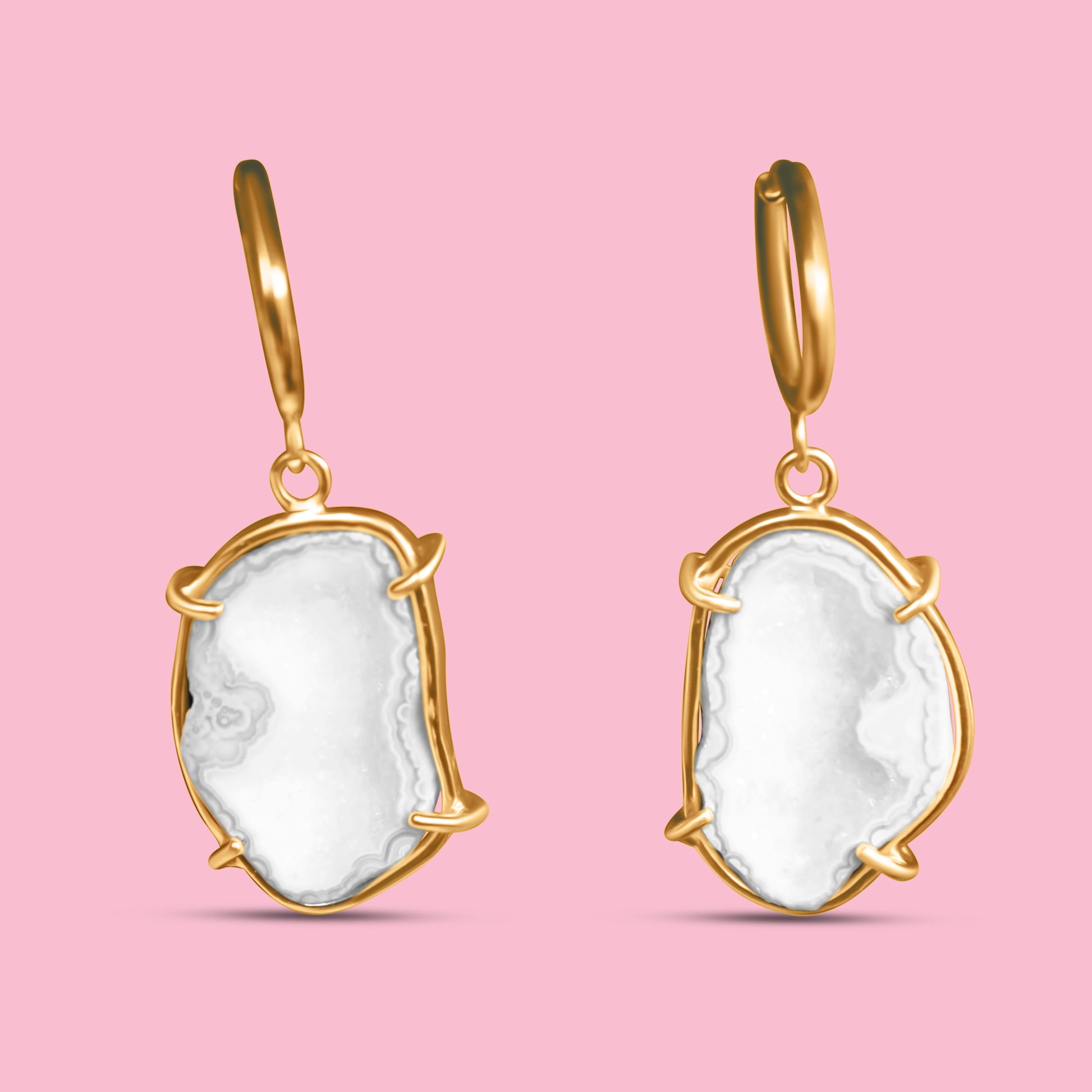 One of a kind: These earrings feature natural white geode stones – each pair is completely unique in shape, texture, and sparkle.