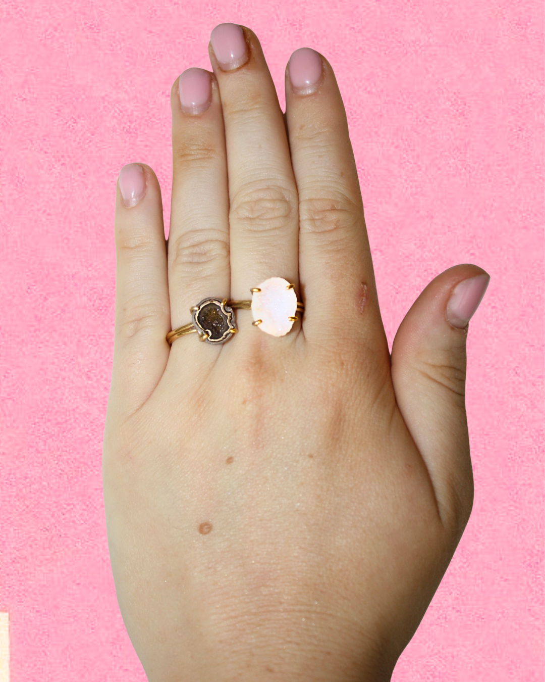Crafted in 925 sterling silver with a luxurious 2-micron gold plating, each ring features a truly unique geode stone – no two are ever the same. Subtle in size yet powerful in presence, these adjustable rings are wearable pieces of nature, designed for those who value individuality, energy, and timeless elegance.