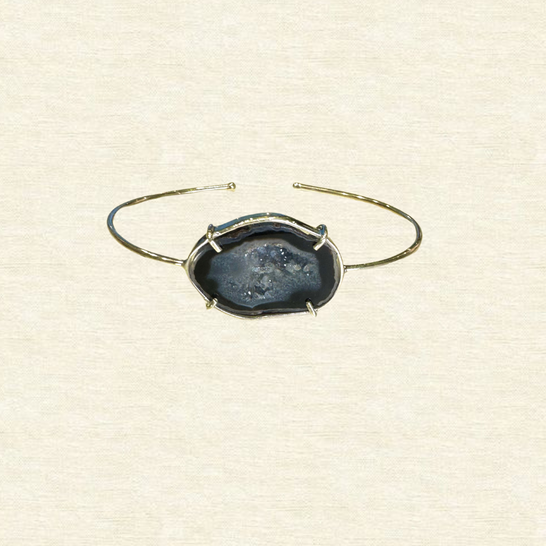 A geode bracelet with a 925 silver base and four layers of 18k goldplating is a luxurious and elegant accessory. The combination of the sturdy silver core and the rich gold layers enhances durability while exuding sophistication. Paired with natural geode slices or crystals, this bracelet becomes a unique blend of earthy charm and refined craftsmanship. The shimmering crystals and gold accents make it a perfect statement piece, ideal for elevating any outfit with a touch of timeless elegance.