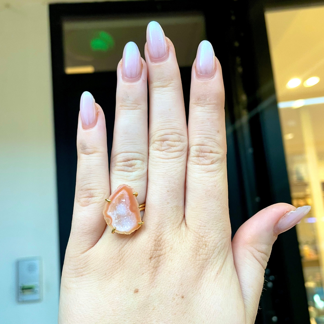 Orange geodes are often associated with creativity, enthusiasm, and vitality. They are believed to promote joy, motivation, and a zest for life. The vibrant orange color is linked to the sacral chakra, which relates to creativity, emotional expression, and sensuality. These geodes are also seen as symbols of energy, inspiration, and personal power, encouraging a dynamic and positive outlook.
