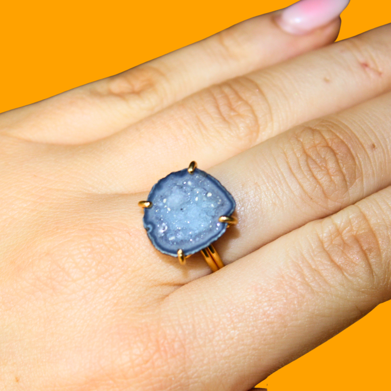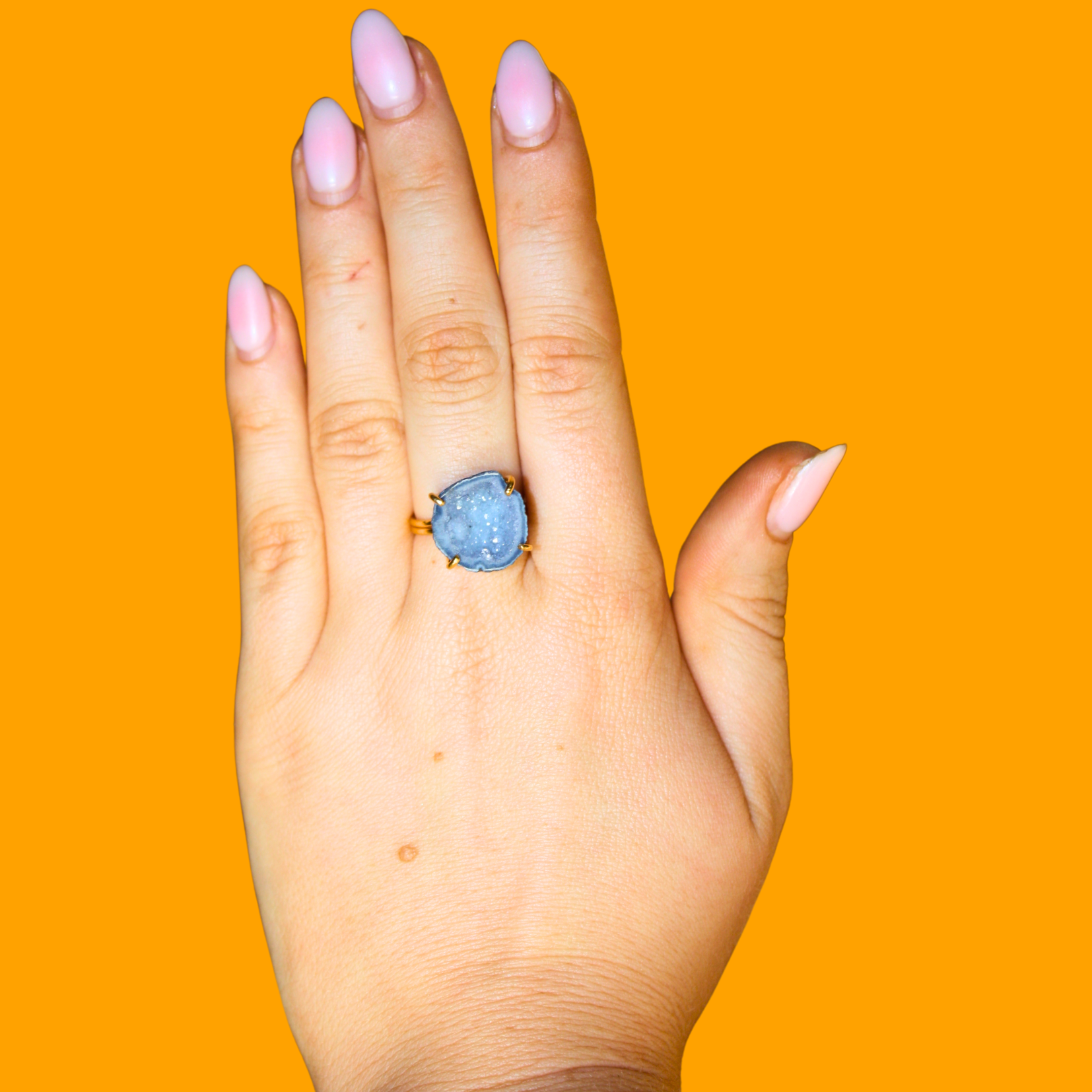This ring is a unique, one-of-a-kind piece, meaning no two are the same. It is crafted from gold vermeil with 2.5 microns of gold and is fully adjustable for a perfect fit. This special ring is designed to bring less stress, better sleep and more confidence making it both a stylish and meaningful accessory.