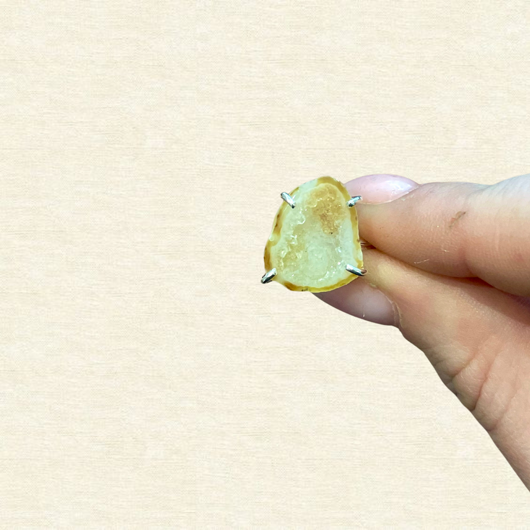 Een beige geode staat symbool voor zuiverheid, genezing en spirituele groei, en wordt vaak gebruikt voor helderheid van geest, versterking van positieve energie en spirituele verbinding.