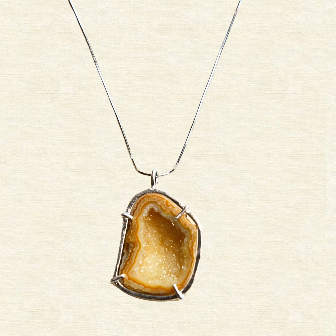 Een oranje- gele geode staat symbool voor vitaliteit, creativiteit en kracht, en wordt vaak gebruikt voor het stimuleren van energie, bevorderen van creatieve expressie en versterken van zelfvertrouwen en motivatie.