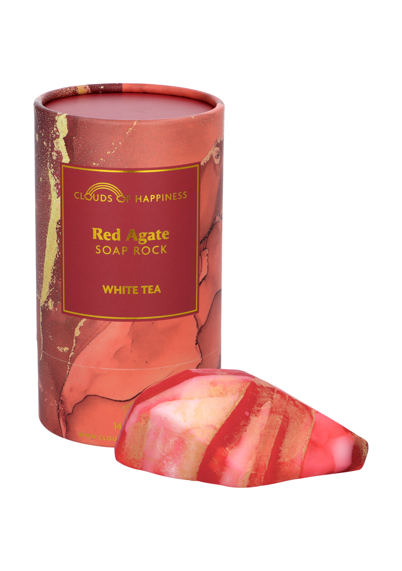 Geïnspireerd door de halfedelsteen rode agaat met een geur van witte thee, is deze halfedelsteenzeep een luxueuze manier om je huid te wassen en te reinigen. Rode agaat is een van de meest aardende agaatsoorten en maakt je vrolijk, optimistisch en levenslustig. De kristalzeep stimuleert expressie en waardering. Een geweldige steen, ook wel eens “Warrior Stone” genoemd. Heeft een sterke connectie met liefde en passie. Maakt trouw & loyaal.