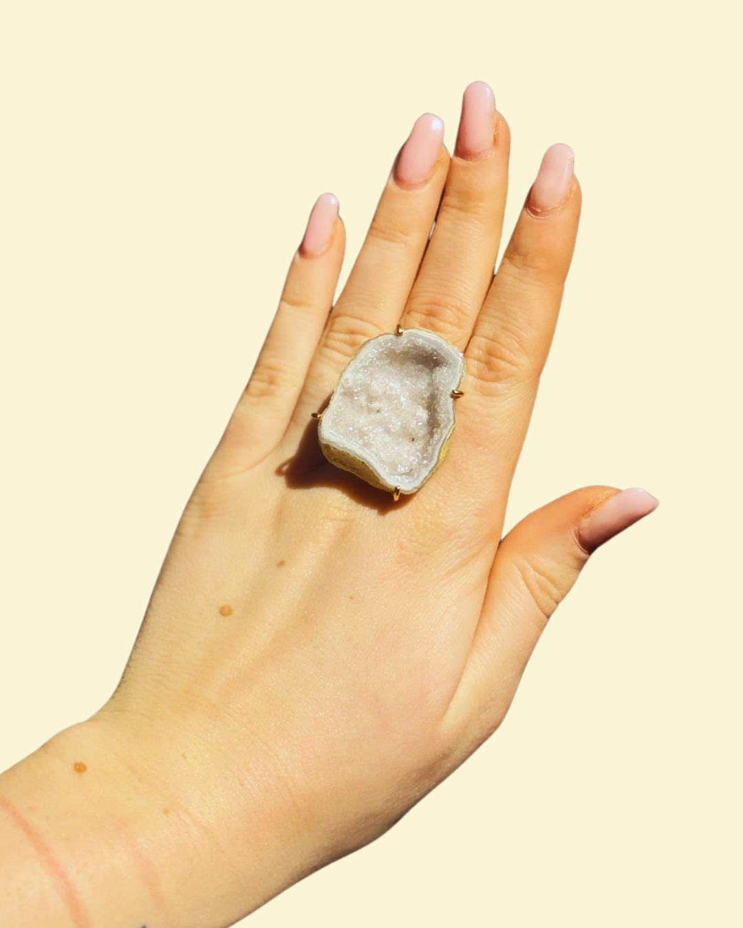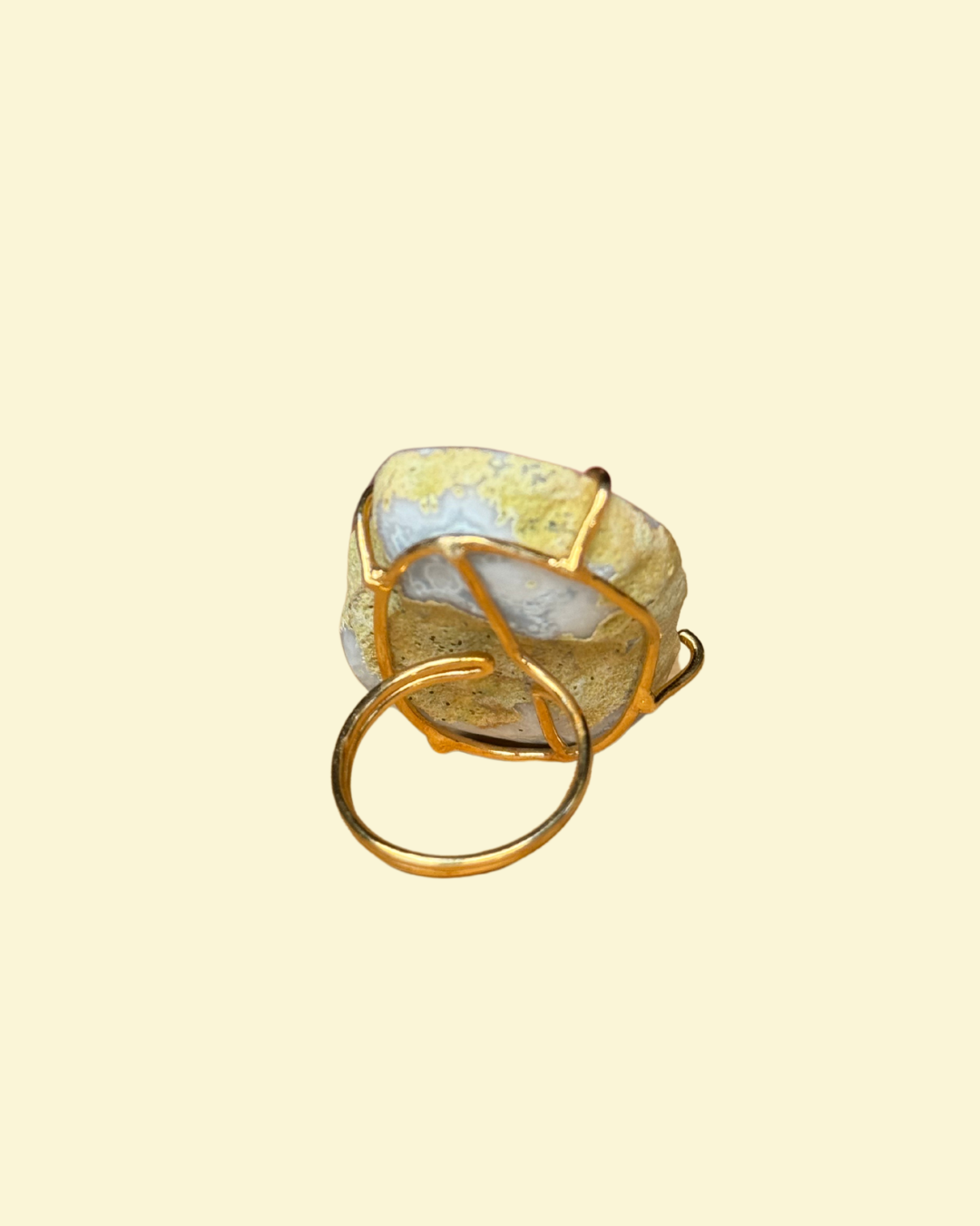 This XL ring is a unique, one-of-a-kind piece, meaning no two are the same. It is crafted from gold vermeil with 2.5 microns of gold and is fully adjustable for a perfect fit. This special ring is designed to bring Calmness, positivity & new beginnings making it both a stylish and meaningful accessory.