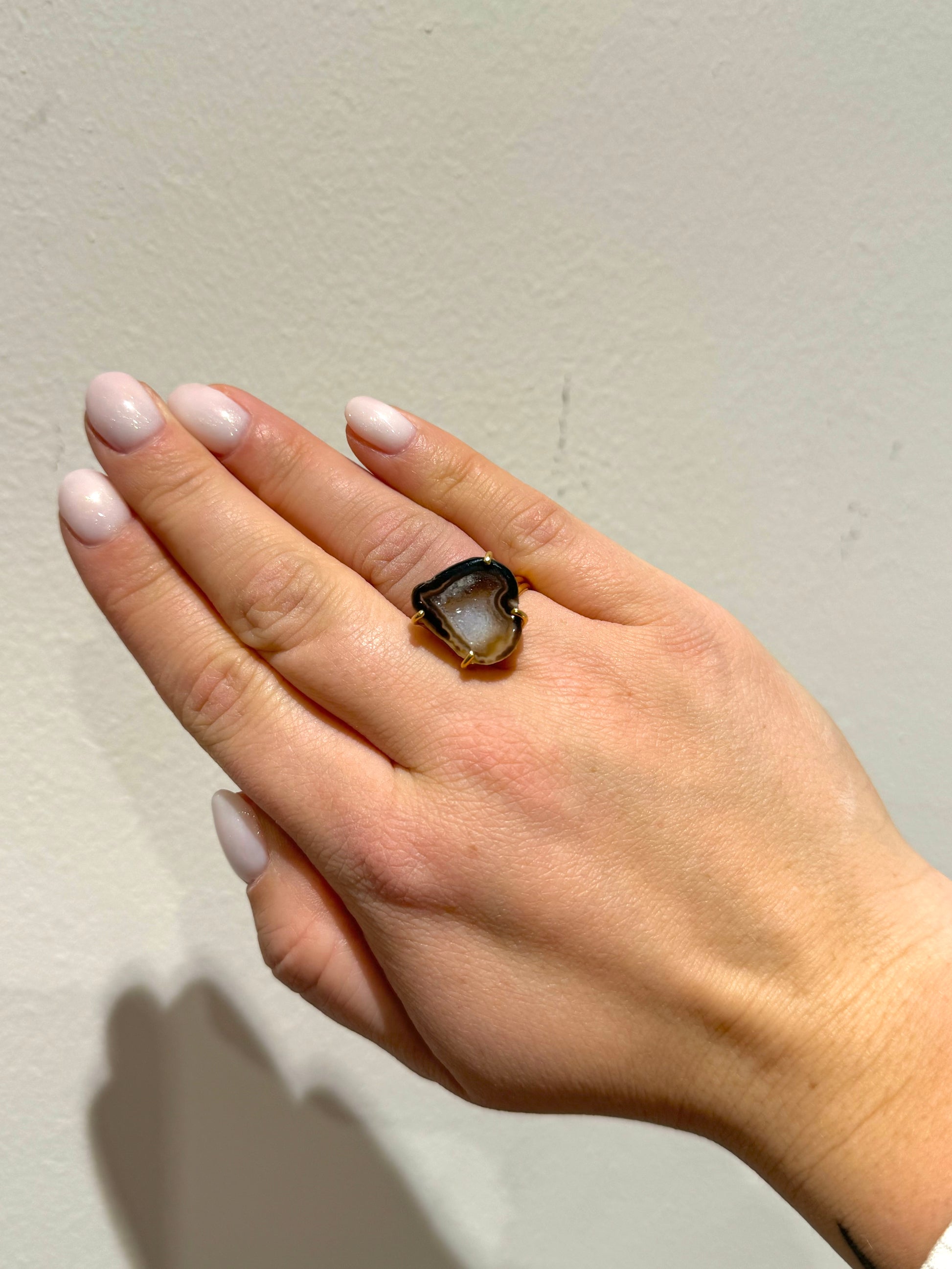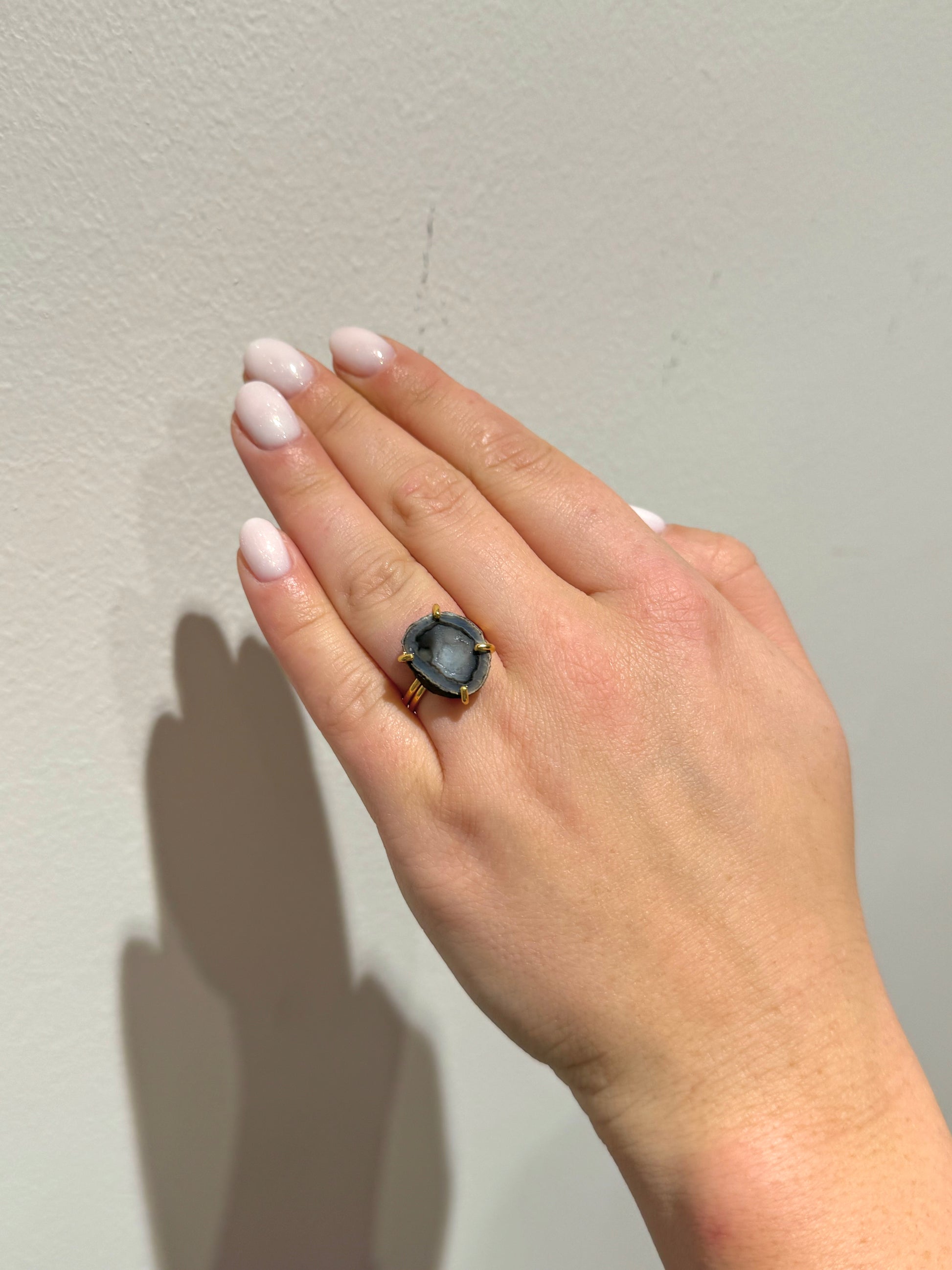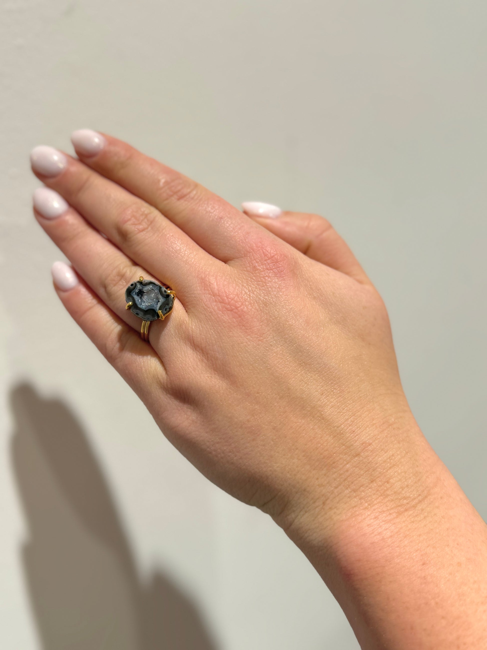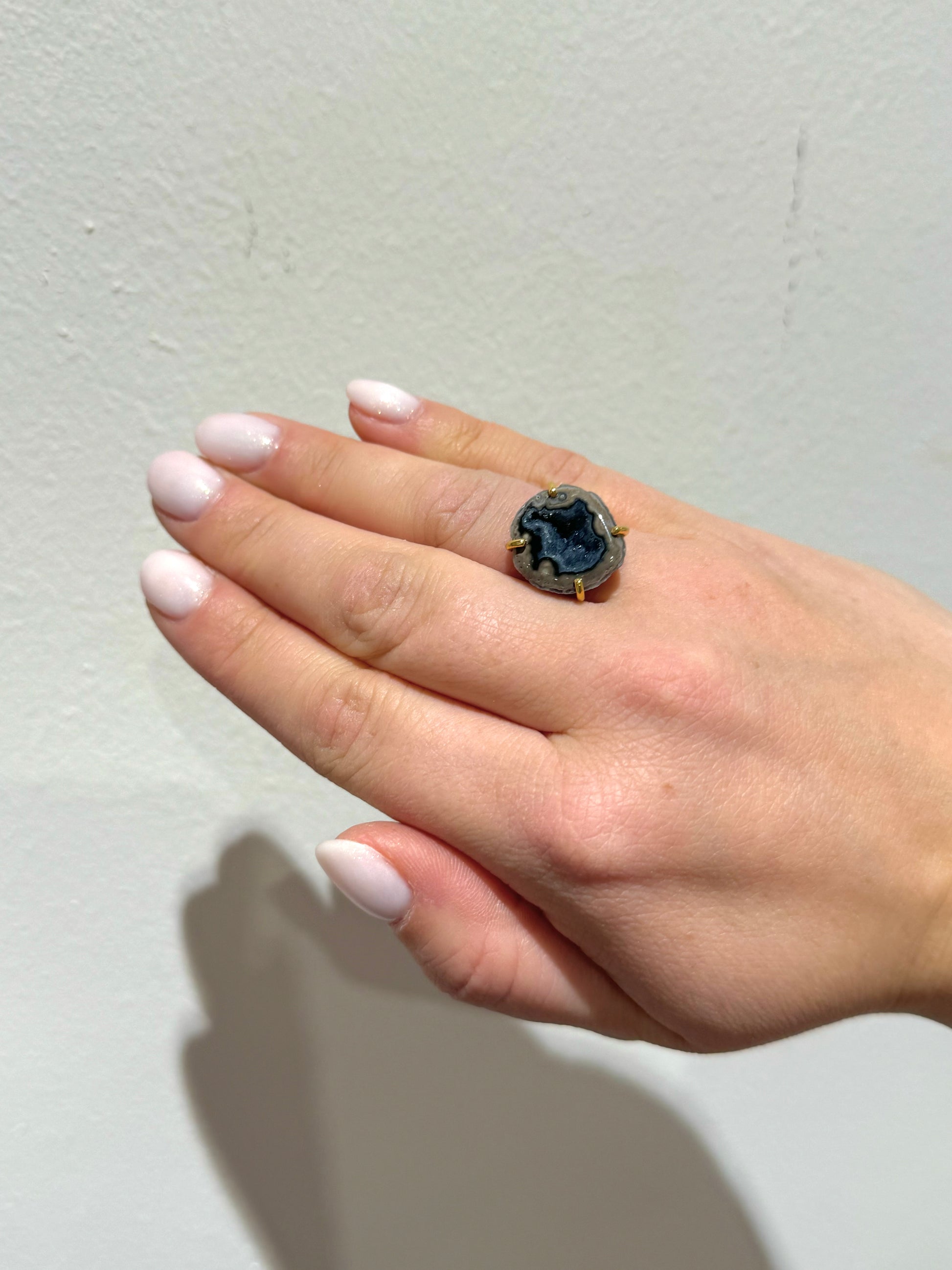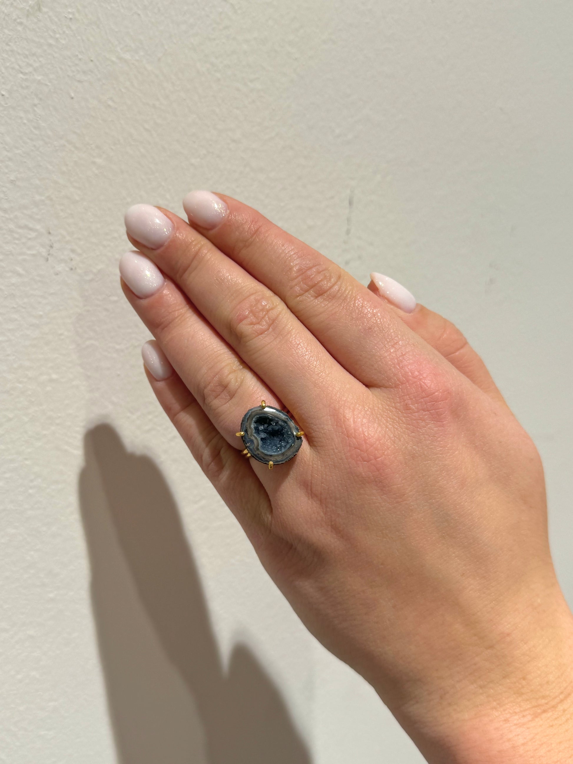 A dark geode is a hollow stone with deep-toned crystals, symbolizing mystery, strength, and protection. It’s associated with grounding energy, resilience, and transformation. The rich, dark hues inspire introspection, power, and a connection to hidden truths.
