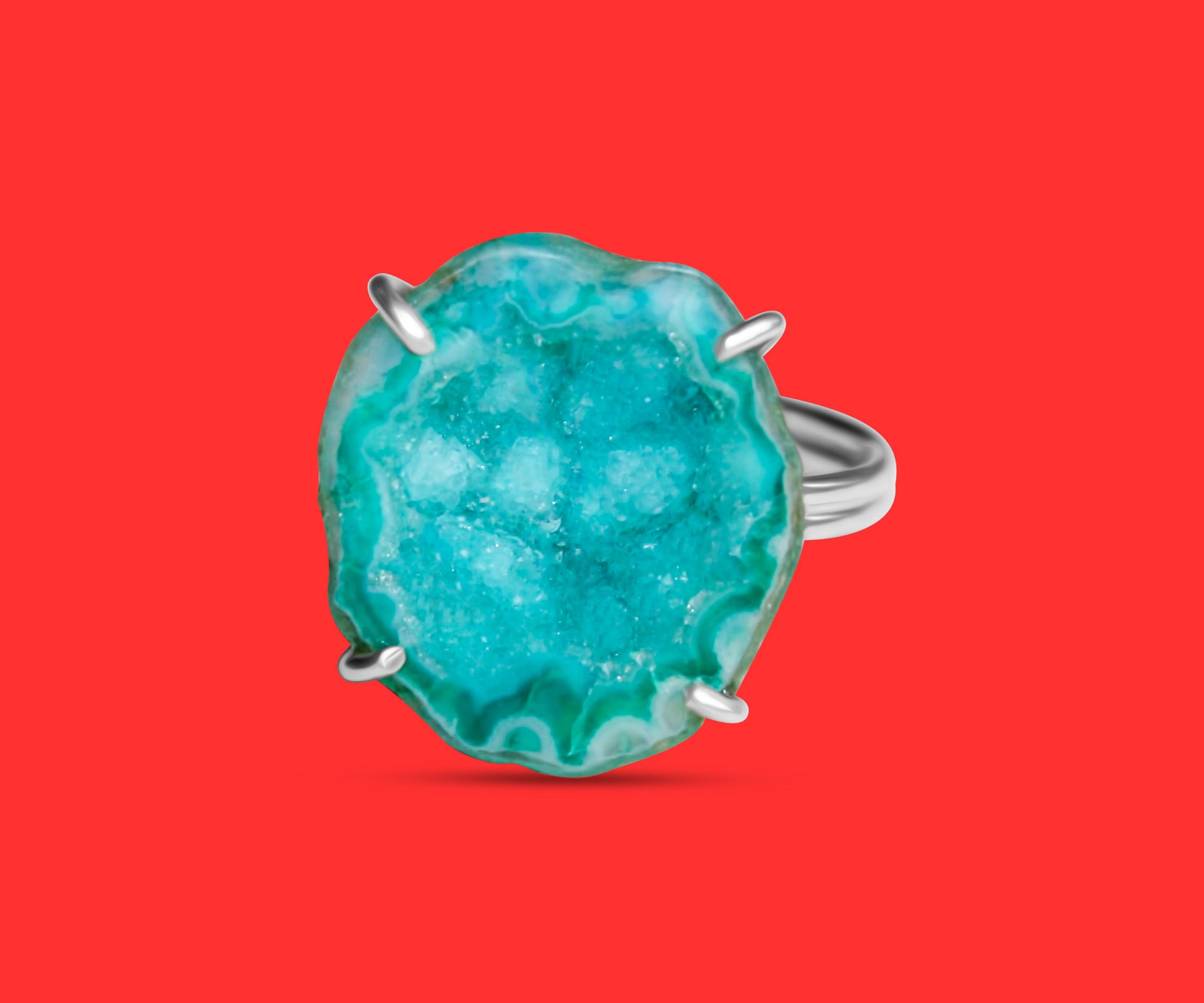 Features unique, one-of-a-kind natural geode stones – no two are alike