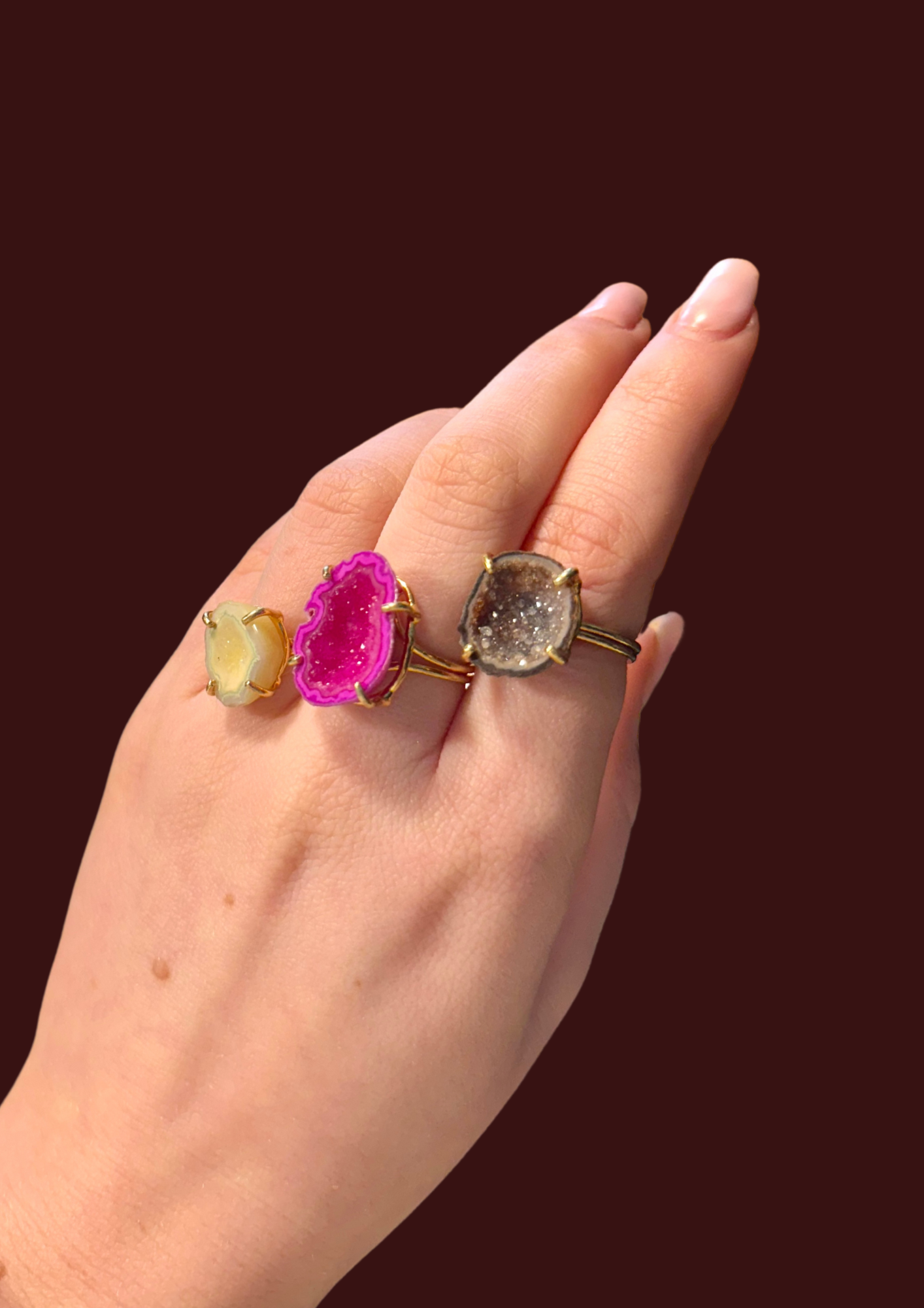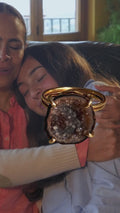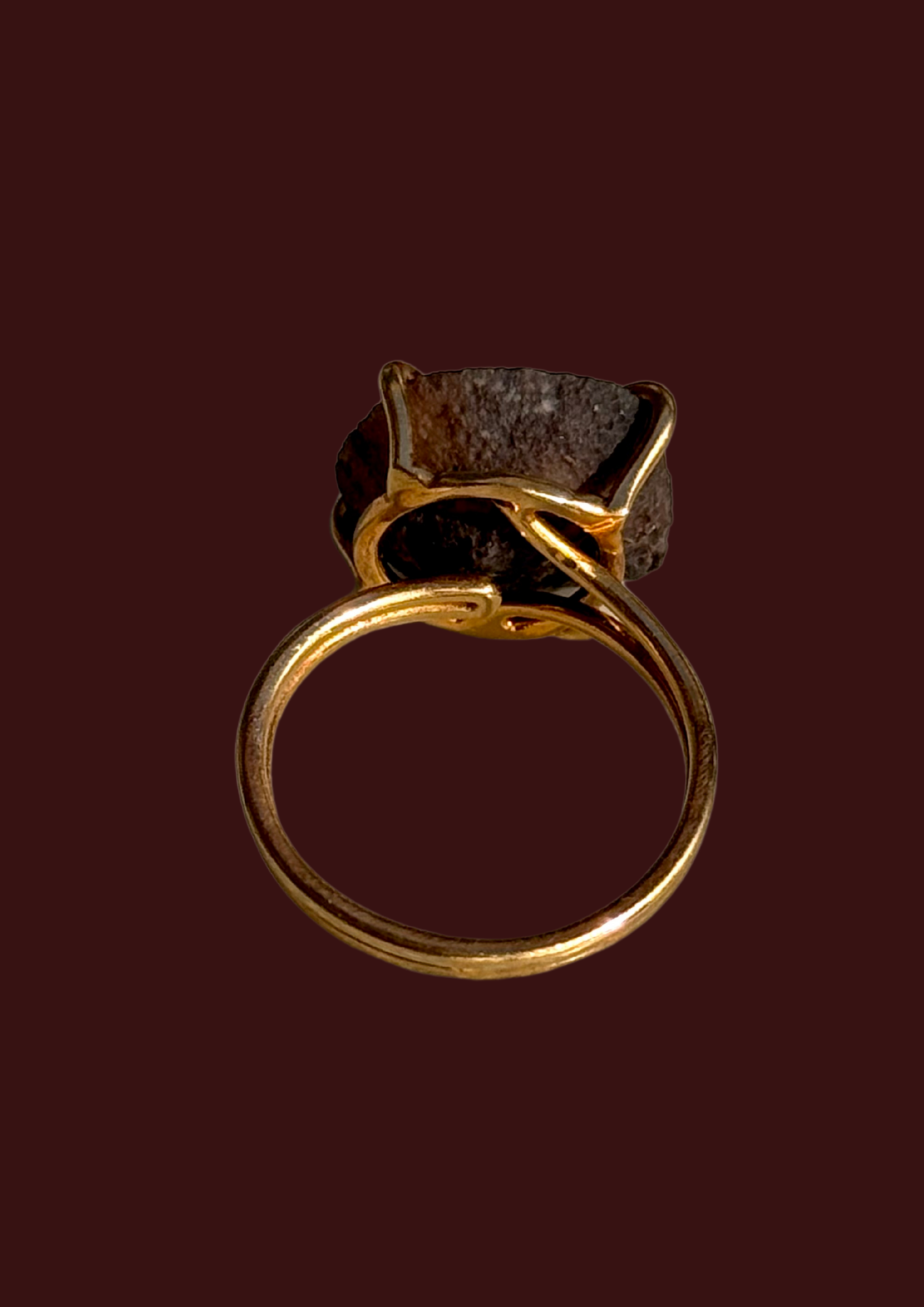 This ring is a unique, one-of-a-kind piece, meaning no two are the same. It is crafted from gold vermeil with 2.5 microns of gold and is fully adjustable for a perfect fit. This special ring is designed to bring comfort & protection, making it both a stylish and meaningful accessory.