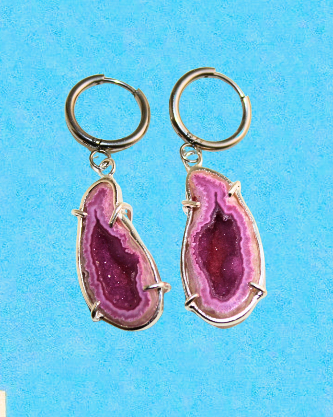 These earrings combine durability and elegance: crafted in stainless steel with a sterling silver 925 base. Each piece is set with a unique pink stone, making it truly one of a kind. The soft pink color symbolizes love, compassion, and harmony — a gentle reminder of emotional balance and inner peace every time you wear them.