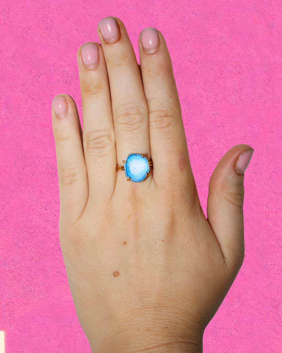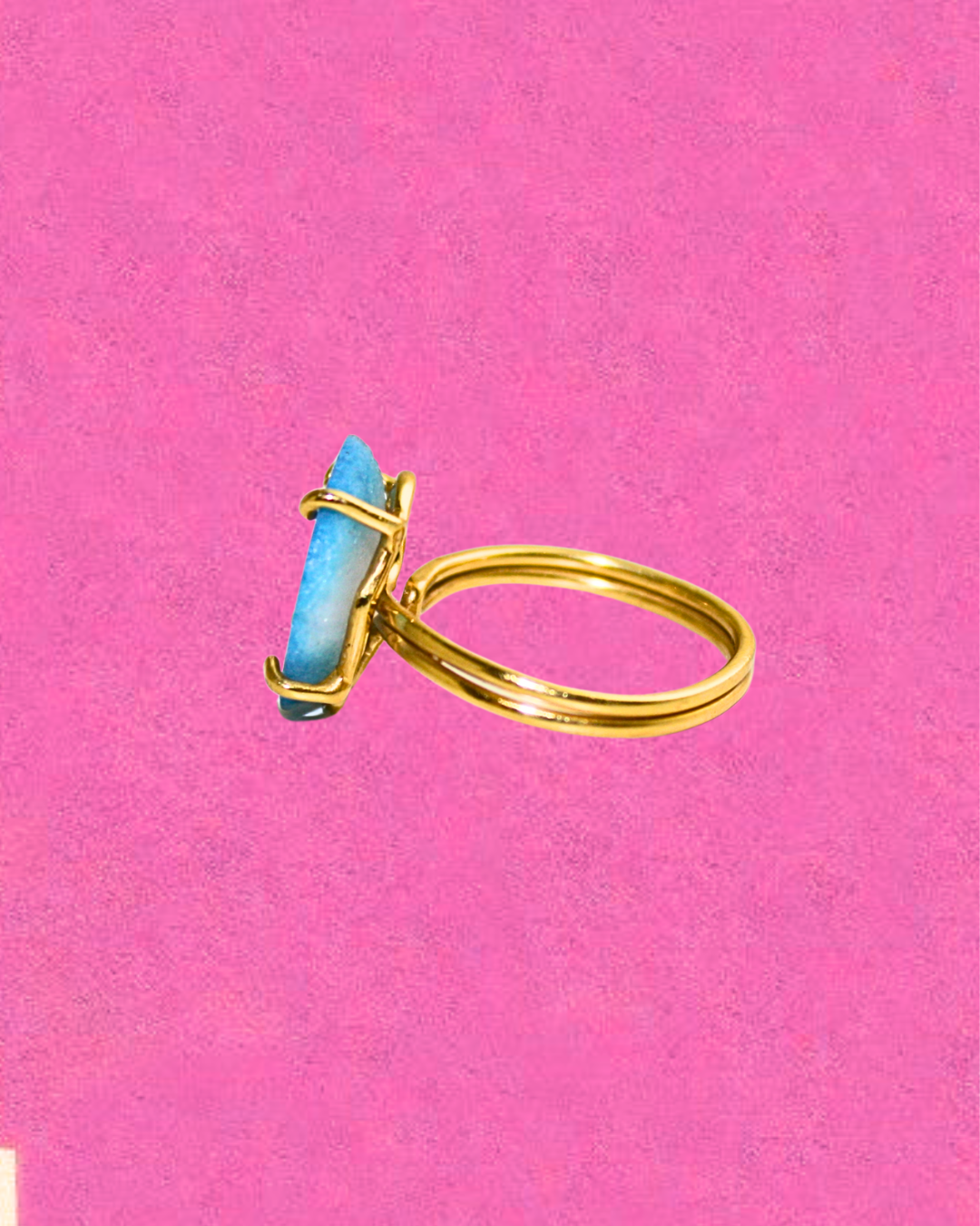 Crafted in 925 sterling silver with a luxurious 2-micron gold plating, each ring features a truly unique geode stone – no two are ever the same. Subtle in size yet powerful in presence, these adjustable rings are wearable pieces of nature, designed for those who value individuality, energy, and timeless elegance.