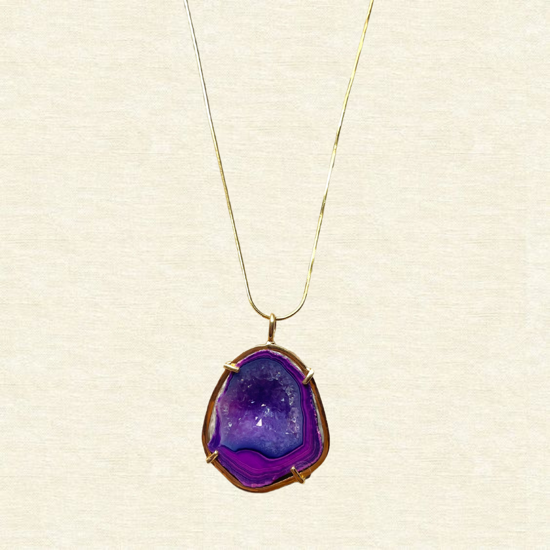 Natural Geode stone + thin beautiful goldplated 18k necklace with silver base