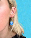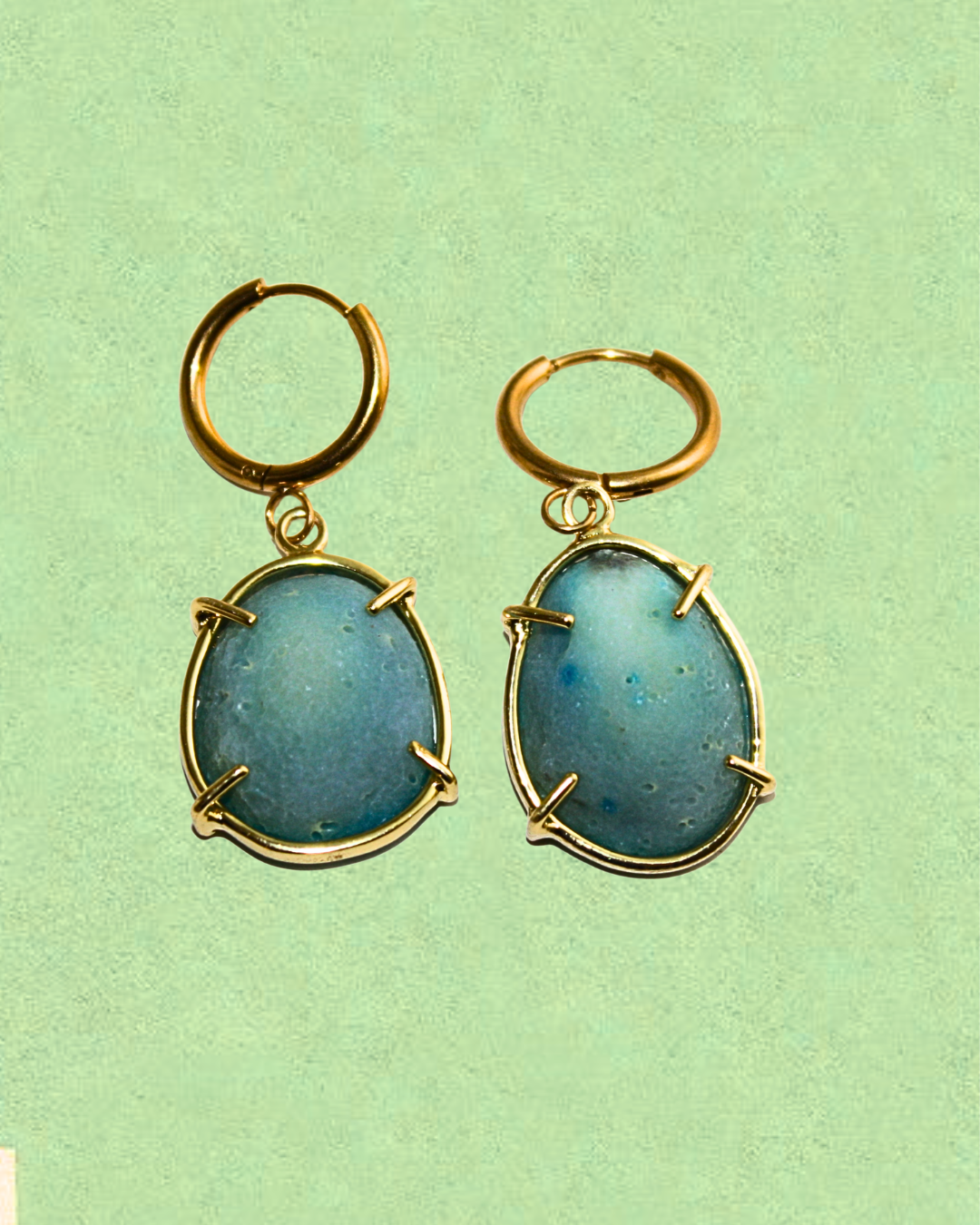 These earrings combine durability and elegance: crafted in stainless steel with a sterling silver 925 base, finished with 2.5 micron electroplated gold for long-lasting shine. Each piece is set with a unique blue stone, making it truly one of a kind. The deep blue color symbolizes wisdom, calmness, and trust — a touch of serenity and clarity that stays with you every time you wear them.