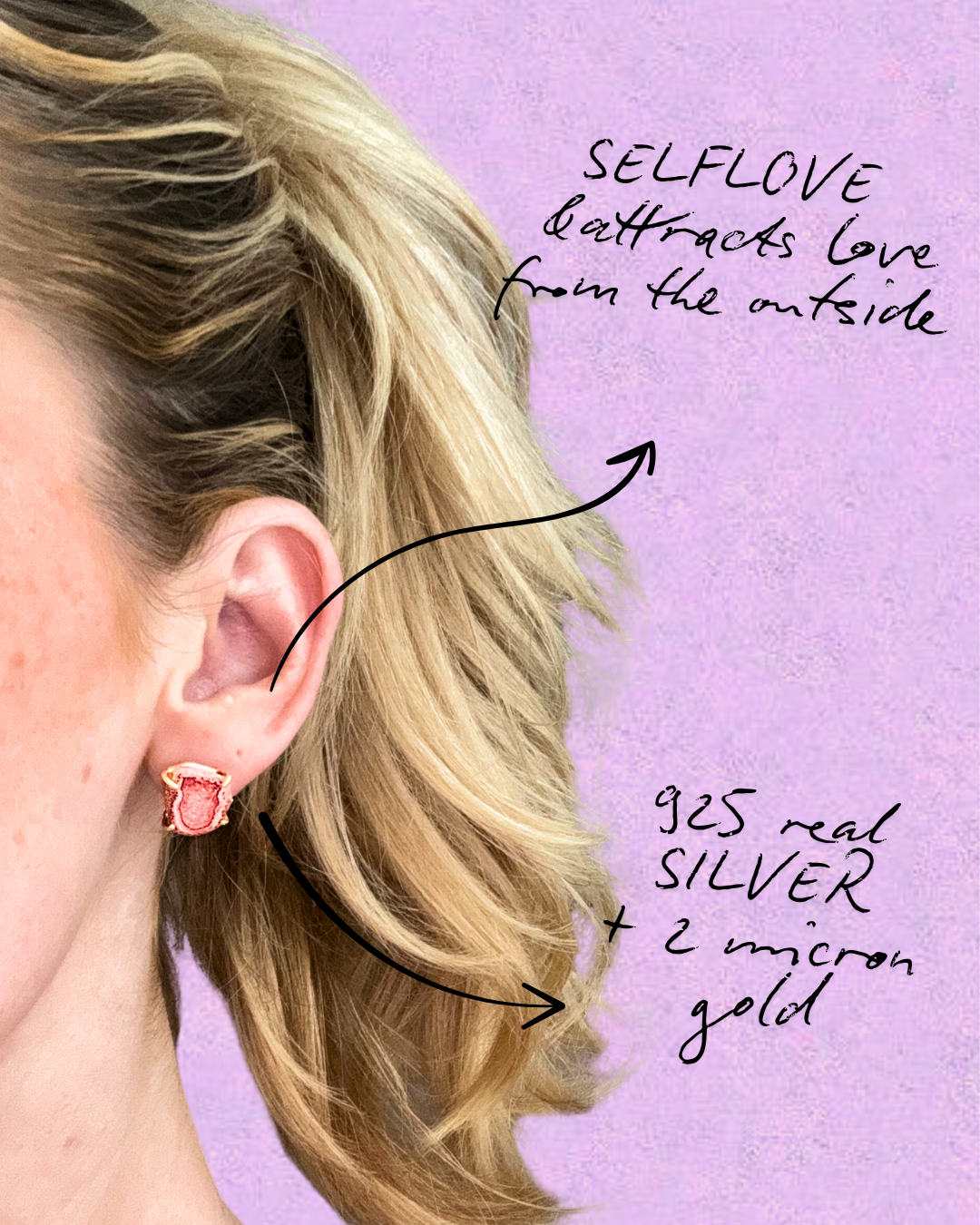 A pair of stud earrings featuring orange geode stones, each with a natural sparkling effect that highlights their unique character. Set in 925 sterling silver and electroplated with 2 micron gold, they symbolize inner strength and vitality, while the orange tones are believed to inspire joy, creativity, and positive energy.