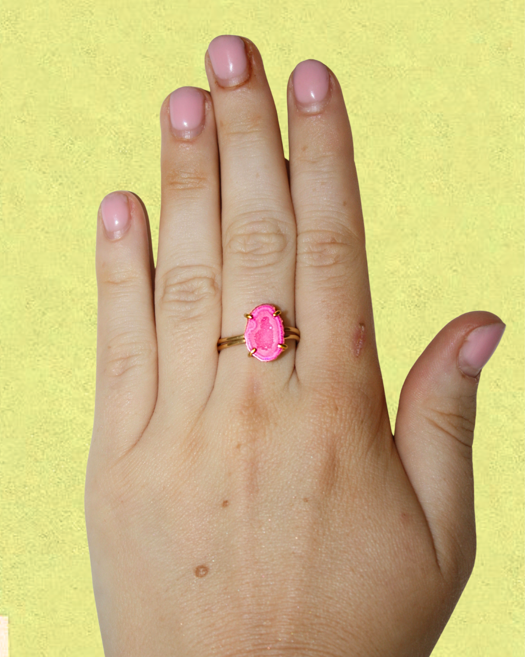 Crafted in 925 sterling silver with a luxurious 2-micron gold plating, each ring features a truly unique geode stone – no two are ever the same. Subtle in size yet powerful in presence, these adjustable rings are wearable pieces of nature, designed for those who value individuality, energy, and timeless elegance.