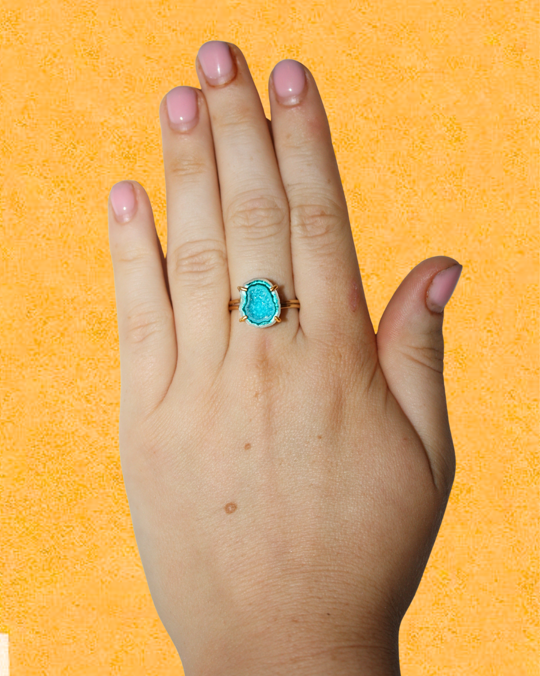Crafted in 925 sterling silver with a luxurious 2-micron gold plating, each ring features a truly unique geode stone – no two are ever the same. Subtle in size yet powerful in presence, these adjustable rings are wearable pieces of nature, designed for those who value individuality, energy, and timeless elegance.