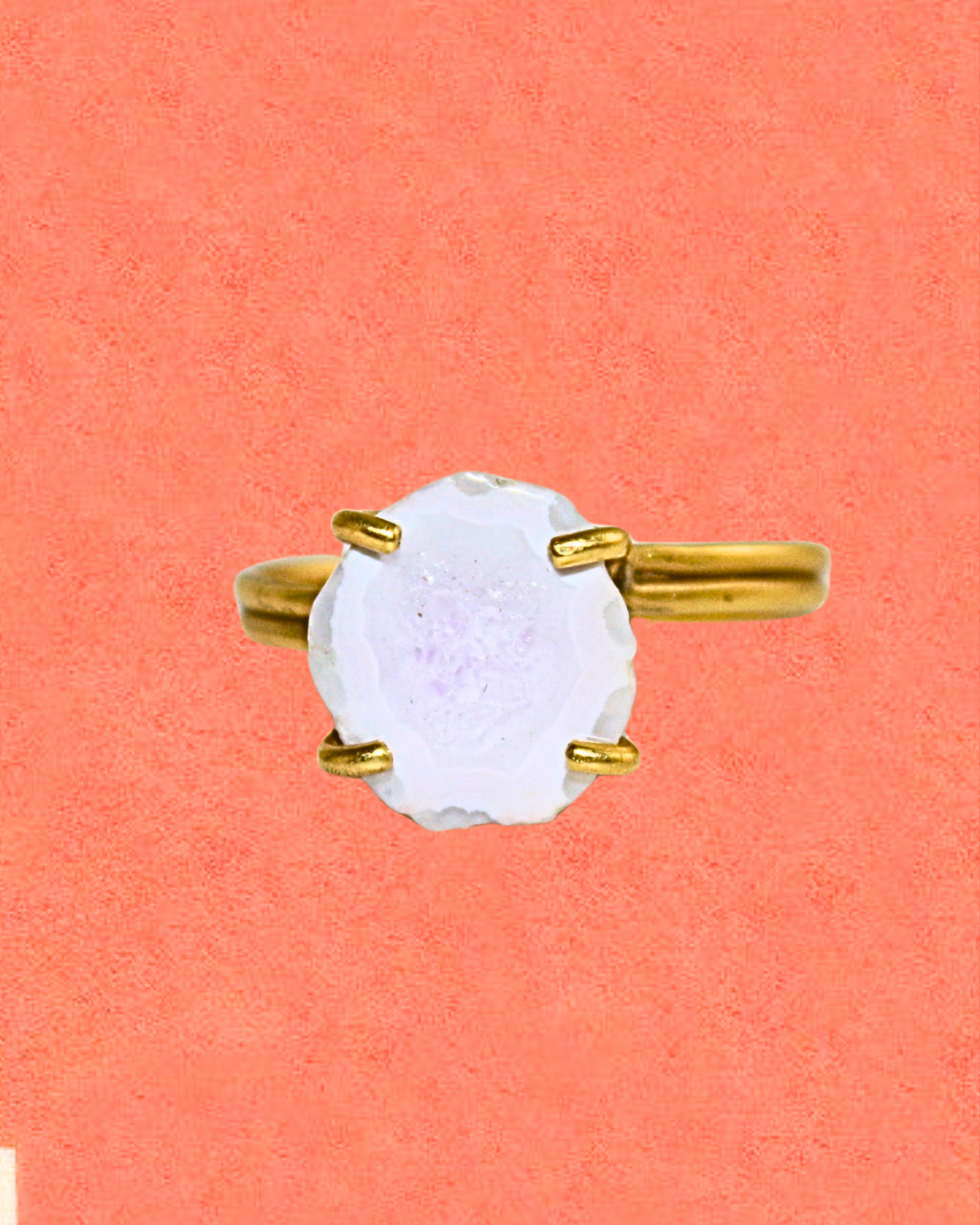 Crafted in 925 sterling silver with a luxurious 2-micron gold plating, each ring features a truly unique geode stone – no two are ever the same. Subtle in size yet powerful in presence, these adjustable rings are wearable pieces of nature, designed for those who value individuality, energy, and timeless elegance.